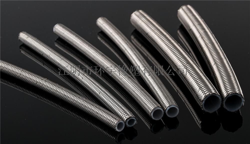 聚四氟乙烯編織管是由聚四氟乙烯管外加一層或多層不銹鋼絲編織而成,編織后能承受較高的壓力。不銹鋼絲編織層是聚四氟乙烯軟管的主要承壓件, 同時對聚四氟乙烯管起到保護作用。客戶可以根據不同的工作壓力選擇一層或者多層編織。