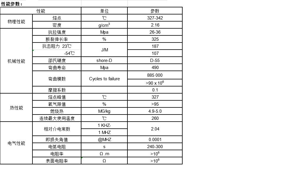 聚四氟乙烯(PTFE)具有極優的化學穩定性,能耐所有強酸、強堿、強氧化劑,與各種有機溶劑也不發生作用。PTFE使用溫度范圍較廣,常壓下可以長期應用于-180℃~250℃,在250℃高溫下處理1000h后,其力學性能變化很小。PTFE具有很低的摩擦因數,是一種良好的減摩,自潤滑材料,其靜摩擦系數小于動摩擦系數,因此用以制作軸承有啟動阻力小,運轉平滑的優點。由于PTFE無極性,耐熱及不吸水,因此又是一種優良的電絕緣材料。還具有優良的耐老化性,不黏性及不燃性。